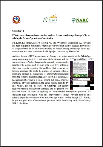 Effectiveness of researcher- extension worker- farmer interlinkage through ICTs in solving the farmers’ problems- Case studies