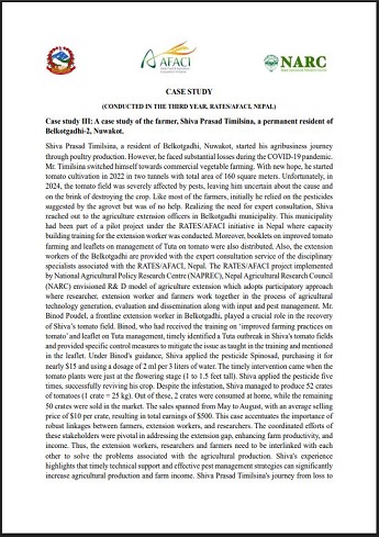 The process of implementing agricultural extension activities of the system is also negatively affected because... Case study III: A case study of the farmer, Shiva Prasad Timilsina, a permanent resident ofBelkotgadhi-2, Nuwakot.
